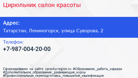 Цирюльник, салон красоты по адресу Татарстан, Лениногорск, улица Суворова, 2 в дальнейшем Организация, размещена в следующих категориях: