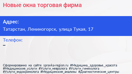 Новые окна, торговая фирма по адресу Татарстан, Лениногорск, улица Тукая, 17 в дальнейшем Организация, размещена в следующих категориях: