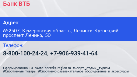 Банк ВТБ по адресу 652507, Кемеровская область, Ленинск-Кузнецкий, проспект Ленина, 50 в дальнейшем Организация, размещена в следующих категориях: