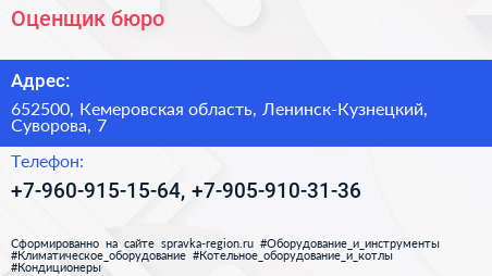 Оценщик, бюро по адресу 652500, Кемеровская область, Ленинск-Кузнецкий, Суворова, 7 в дальнейшем Организация, размещена в следующих категориях: