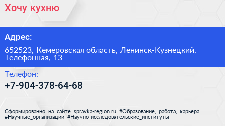 Хочу кухню по адресу 652523, Кемеровская область, Ленинск-Кузнецкий, Телефонная, 13 в дальнейшем Организация, размещена в следующих категориях: