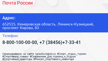 Почта России по адресу 652515, Кемеровская область, Ленинск-Кузнецкий, проспект Кирова, 83 в дальнейшем Организация, размещена в следующих категориях: