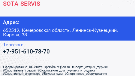 SOTA-SERVIS по адресу 652519, Кемеровская область, Ленинск-Кузнецкий, Кирова, 38 в дальнейшем Организация, размещена в следующих категориях: