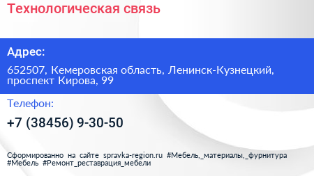 Технологическая связь по адресу 652507, Кемеровская область, Ленинск-Кузнецкий, проспект Кирова, 99 в дальнейшем Организация, размещена в следующих категориях: