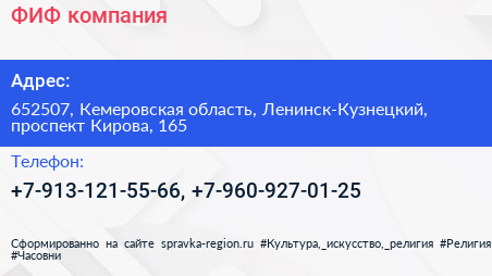 ФИФ, компания по адресу 652507, Кемеровская область, Ленинск-Кузнецкий, проспект Кирова, 165 в дальнейшем Организация, размещена в следующих категориях: