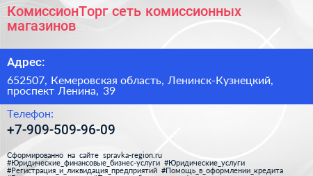 КомиссионТорг, сеть комиссионных магазинов по адресу 652507, Кемеровская область, Ленинск-Кузнецкий, проспект Ленина, 39 в дальнейшем Организация, размещена в следующих категориях: