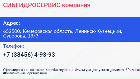 СИБГИДРОСЕРВИС, компания по адресу 652500, Кемеровская область, Ленинск-Кузнецкий, Суворова, 19/3 в дальнейшем Организация, размещена в следующих категориях: