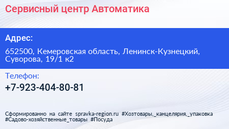 Сервисный центр Автоматика по адресу 652500, Кемеровская область, Ленинск-Кузнецкий, Суворова, 19/1 к2 в дальнейшем Организация, размещена в следующих категориях: