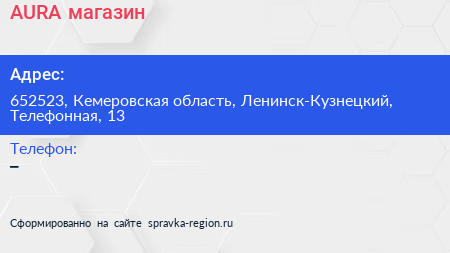 AURA, магазин по адресу 652523, Кемеровская область, Ленинск-Кузнецкий, Телефонная, 13 в дальнейшем Организация, размещена в следующих категориях: