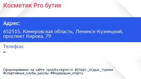 Косметик.Pro, бутик по адресу 652515, Кемеровская область, Ленинск-Кузнецкий, проспект Кирова, 79 в дальнейшем Организация, размещена в следующих категориях: