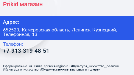 Prikid, магазин по адресу 652523, Кемеровская область, Ленинск-Кузнецкий, Телефонная, 13 в дальнейшем Организация, размещена в следующих категориях: