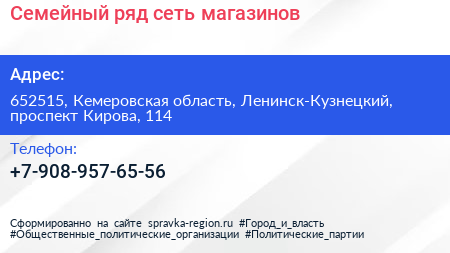 Семейный ряд, сеть магазинов по адресу 652515, Кемеровская область, Ленинск-Кузнецкий, проспект Кирова, 114 в дальнейшем Организация, размещена в следующих категориях:
