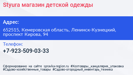 Styura, магазин детской одежды по адресу 652515, Кемеровская область, Ленинск-Кузнецкий, проспект Кирова, 94 в дальнейшем Организация, размещена в следующих категориях: