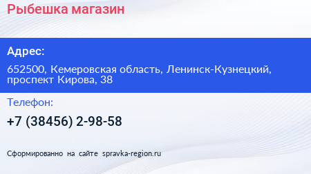 Рыбешка, магазин по адресу 652500, Кемеровская область, Ленинск-Кузнецкий, проспект Кирова, 38 в дальнейшем Организация, размещена в следующих категориях: