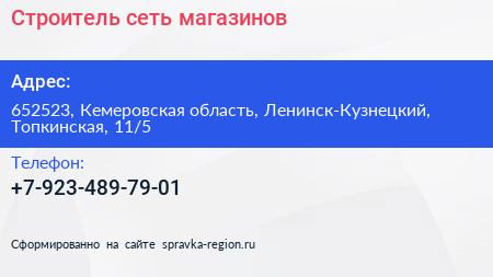 Строитель, сеть магазинов по адресу 652523, Кемеровская область, Ленинск-Кузнецкий, Топкинская, 11/5 в дальнейшем Организация, размещена в следующих категориях:
