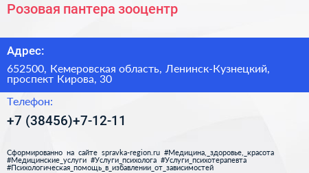 Розовая пантера, зооцентр по адресу 652500, Кемеровская область, Ленинск-Кузнецкий, проспект Кирова, 30 в дальнейшем Организация, размещена в следующих категориях: