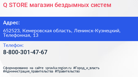 Q STORE, магазин бездымных систем по адресу 652523, Кемеровская область, Ленинск-Кузнецкий, Телефонная, 13 в дальнейшем Организация, размещена в следующих категориях: