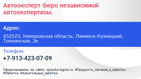 Автоэксперт, бюро независимой автоэкспертизы по адресу 652523, Кемеровская область, Ленинск-Кузнецкий, Топкинская, 3е в дальнейшем Организация, размещена в следующих категориях: