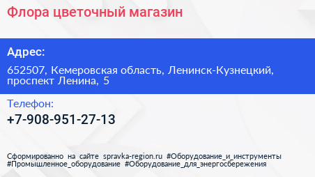 Флора, цветочный магазин по адресу 652507, Кемеровская область, Ленинск-Кузнецкий, проспект Ленина, 5 в дальнейшем Организация, размещена в следующих категориях:
