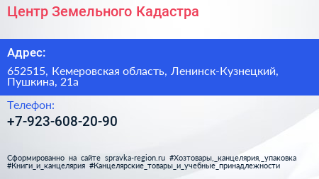 Центр Земельного Кадастра по адресу 652515, Кемеровская область, Ленинск-Кузнецкий, Пушкина, 21а в дальнейшем Организация, размещена в следующих категориях: