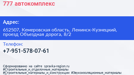 777, автокомплекс по адресу 652507, Кемеровская область, Ленинск-Кузнецкий, проезд Объездная дорога, 8/2 в дальнейшем Организация, размещена в следующих категориях: