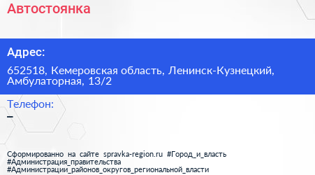 Автостоянка по адресу 652518, Кемеровская область, Ленинск-Кузнецкий, Амбулаторная, 13/2 в дальнейшем Организация, размещена в следующих категориях: