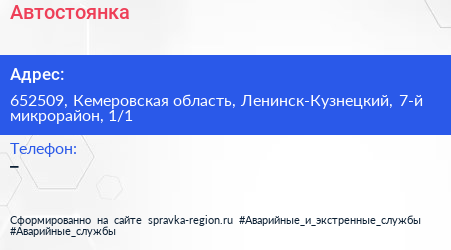 Автостоянка по адресу 652509, Кемеровская область, Ленинск-Кузнецкий, 7-й микрорайон, 1/1 в дальнейшем Организация, размещена в следующих категориях: