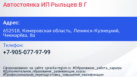 Автостоянка, ИП Рыльцев В.Г. по адресу 652518, Кемеровская область, Ленинск-Кузнецкий, Чекмарёва, 8а в дальнейшем Организация, размещена в следующих категориях: