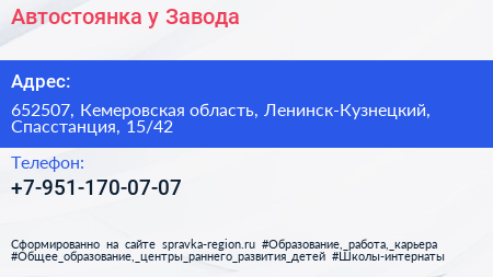 Автостоянка у Завода по адресу 652507, Кемеровская область, Ленинск-Кузнецкий, Спасстанция, 15/42 в дальнейшем Организация, размещена в следующих категориях: