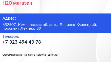 H2O, магазин по адресу 652507, Кемеровская область, Ленинск-Кузнецкий, проспект Ленина, 39 в дальнейшем Организация, размещена в следующих категориях: