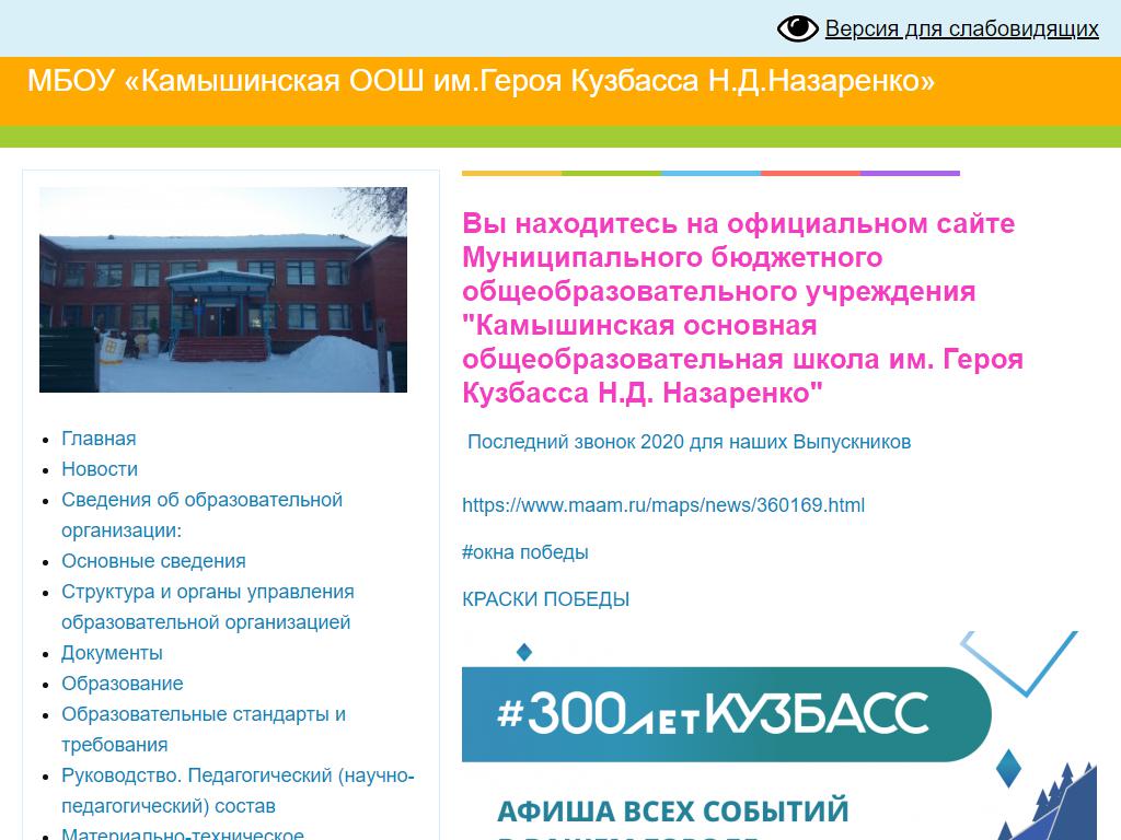 Камышинская основная общеобразовательная школа им. героя Кузбассва Н.Д. Назаренко по адресу 652583, Кемеровская область, Ленинск-Кузнецкий, Центральная, 70 в дальнейшем Организация, размещена в следующих категориях: