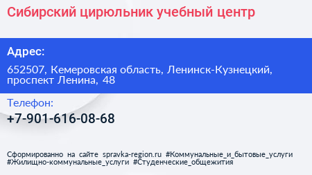 Сибирский цирюльник, учебный центр по адресу 652507, Кемеровская область, Ленинск-Кузнецкий, проспект Ленина, 48 в дальнейшем Организация, размещена в следующих категориях:
