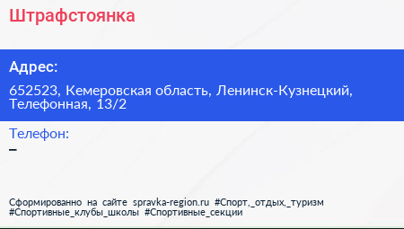 Штрафстоянка по адресу 652523, Кемеровская область, Ленинск-Кузнецкий, Телефонная, 13/2 в дальнейшем Организация, размещена в следующих категориях: