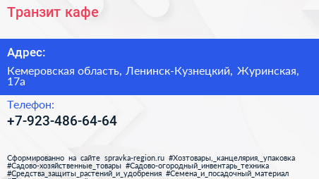 Транзит, кафе по адресу Кемеровская область, Ленинск-Кузнецкий, Журинская, 17а в дальнейшем Организация, размещена в следующих категориях: