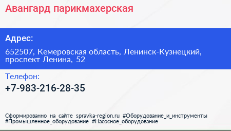 Авангард, парикмахерская по адресу 652507, Кемеровская область, Ленинск-Кузнецкий, проспект Ленина, 52 в дальнейшем Организация, размещена в следующих категориях: