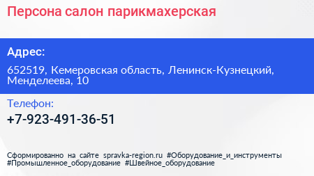 Персона, салон-парикмахерская по адресу 652519, Кемеровская область, Ленинск-Кузнецкий, Менделеева, 10 в дальнейшем Организация, размещена в следующих категориях: