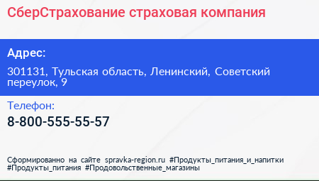 СберСтрахование, страховая компания по адресу 301131, Тульская область, Ленинский, Советский переулок, 9 в дальнейшем Организация, размещена в следующих категориях: