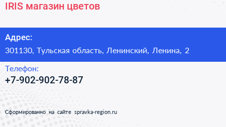 IRIS, магазин цветов по адресу 301130, Тульская область, Ленинский, Ленина, 2 в дальнейшем Организация, размещена в следующих категориях: