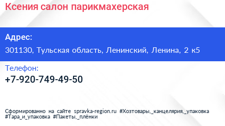 Ксения, салон-парикмахерская по адресу 301130, Тульская область, Ленинский, Ленина, 2 к5 в дальнейшем Организация, размещена в следующих категориях: