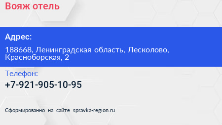 Вояж, отель по адресу 188668, Ленинградская область, Лесколово, Красноборская, 2 в дальнейшем Организация, размещена в следующих категориях: