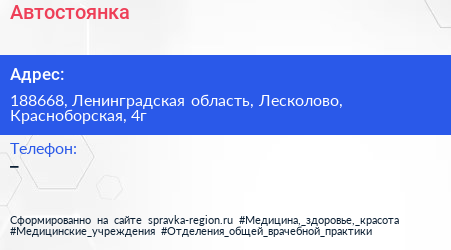 Автостоянка по адресу 188668, Ленинградская область, Лесколово, Красноборская, 4г в дальнейшем Организация, размещена в следующих категориях: