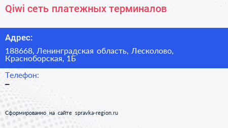 Qiwi, сеть платежных терминалов по адресу 188668, Ленинградская область, Лесколово, Красноборская, 1Б в дальнейшем Организация, размещена в следующих категориях: