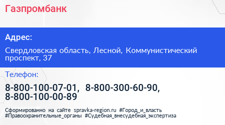 Газпромбанк по адресу Свердловская область, Лесной, Коммунистический проспект, 37 в дальнейшем Организация, размещена в следующих категориях: