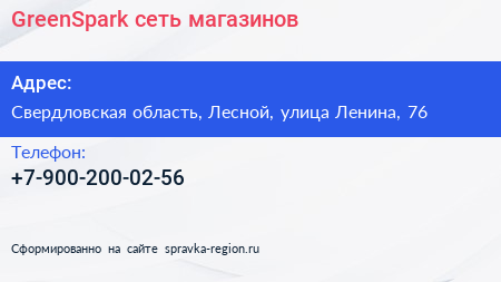 GreenSpark, сеть магазинов по адресу Свердловская область, Лесной, улица Ленина, 76 в дальнейшем Организация, размещена в следующих категориях: