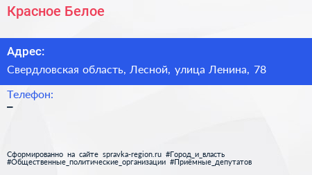 Красное & Белое по адресу Свердловская область, Лесной, улица Ленина, 78 в дальнейшем Организация, размещена в следующих категориях: