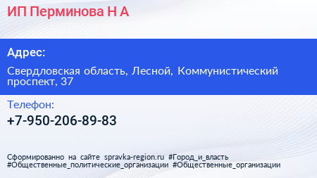 ИП Перминова Н.А. по адресу Свердловская область, Лесной, Коммунистический проспект, 37 в дальнейшем Организация, размещена в следующих категориях: