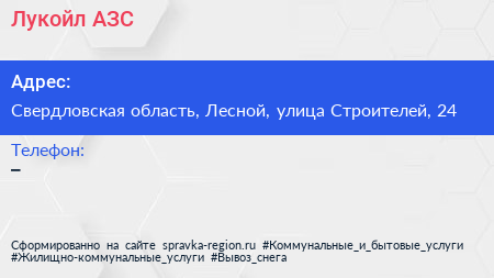 Лукойл, АЗС по адресу Свердловская область, Лесной, улица Строителей, 24 в дальнейшем Организация, размещена в следующих категориях: