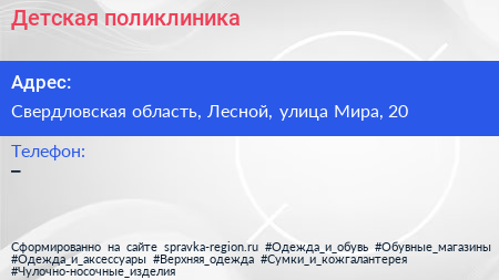 Детская поликлиника по адресу Свердловская область, Лесной, улица Мира, 20 в дальнейшем Организация, размещена в следующих категориях: