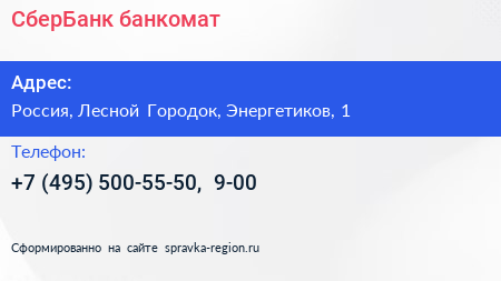 СберБанк, банкомат по адресу Торговый центр "Орешек", 1, улица Энергетиков, Лесной Городок, Одинцовский городской округ, Московская область, Центральный федеральный округ, 143080, Россия в дальнейшем Организация, размещена в следующих категориях:
