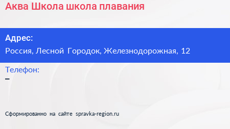 Аква Школа, школа плавания по адресу Оздоровительный комплекс «Московский метрополитен», Солмановский проезд, Одинцовский городской округ, Московская область, Центральный федеральный округ, 143080, Россия в дальнейшем Организация, размещена в следующих категориях: